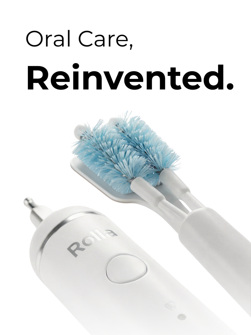 Rolla Care automates the correct brushing action. While a regular toothbrush leaves the technique to the user, its 360° rotating head replicates a continuous motion inspired by professional recommendations for a more uniform clean.